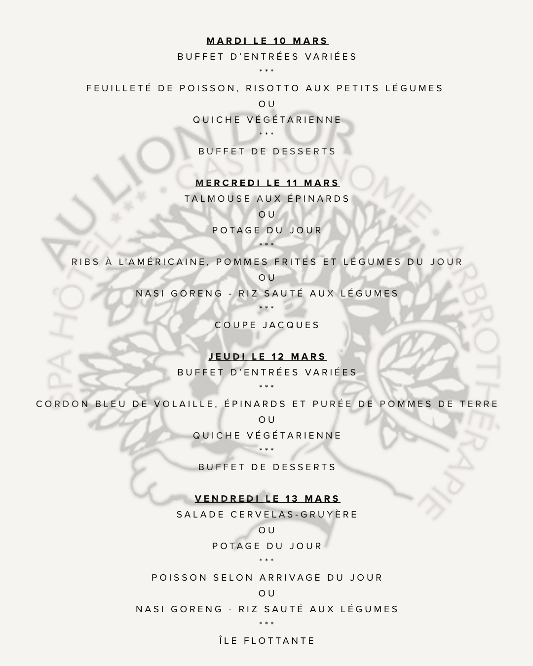 Ouvert le lundi soir pour les clients de l'hôtel uniquement