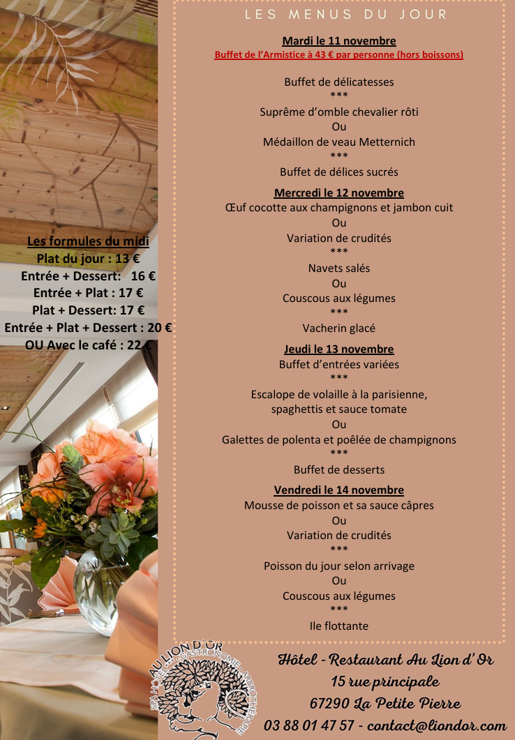 C'est entre château et fortification de Vauban, nichée dans un écrin de nature sur l'ancienne route du sel, proche d'Haguenau et de Saint-Avold que la jolie table du Logis Hôtel Au Lion d'Or vous attend.