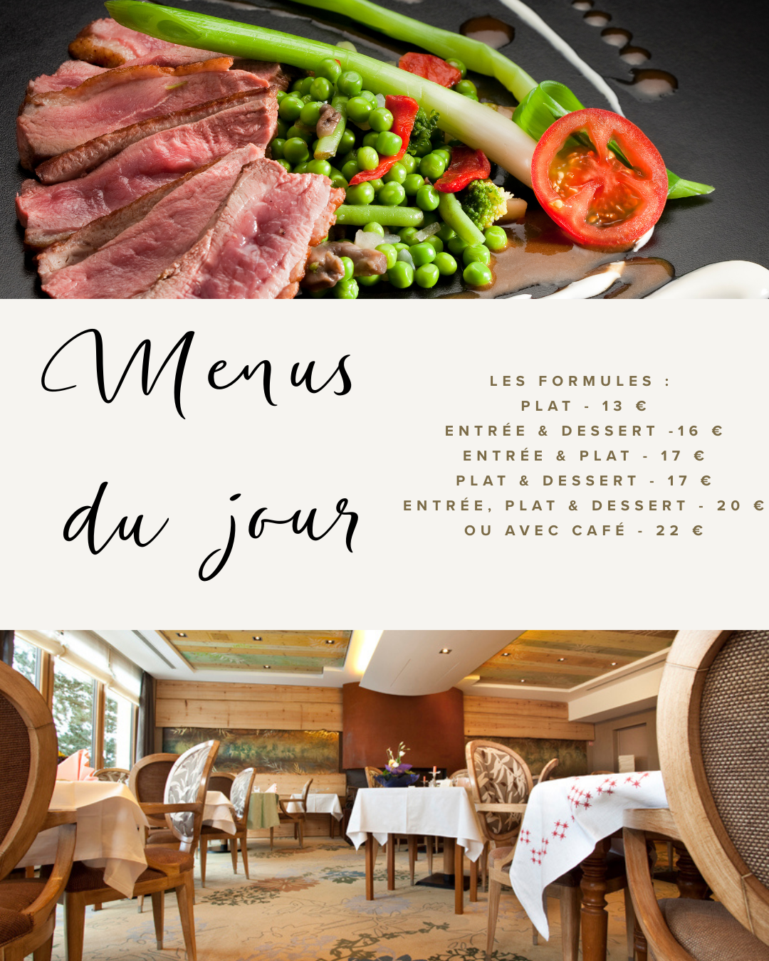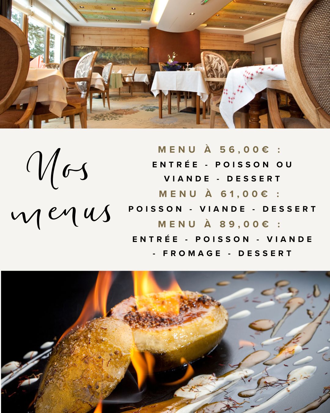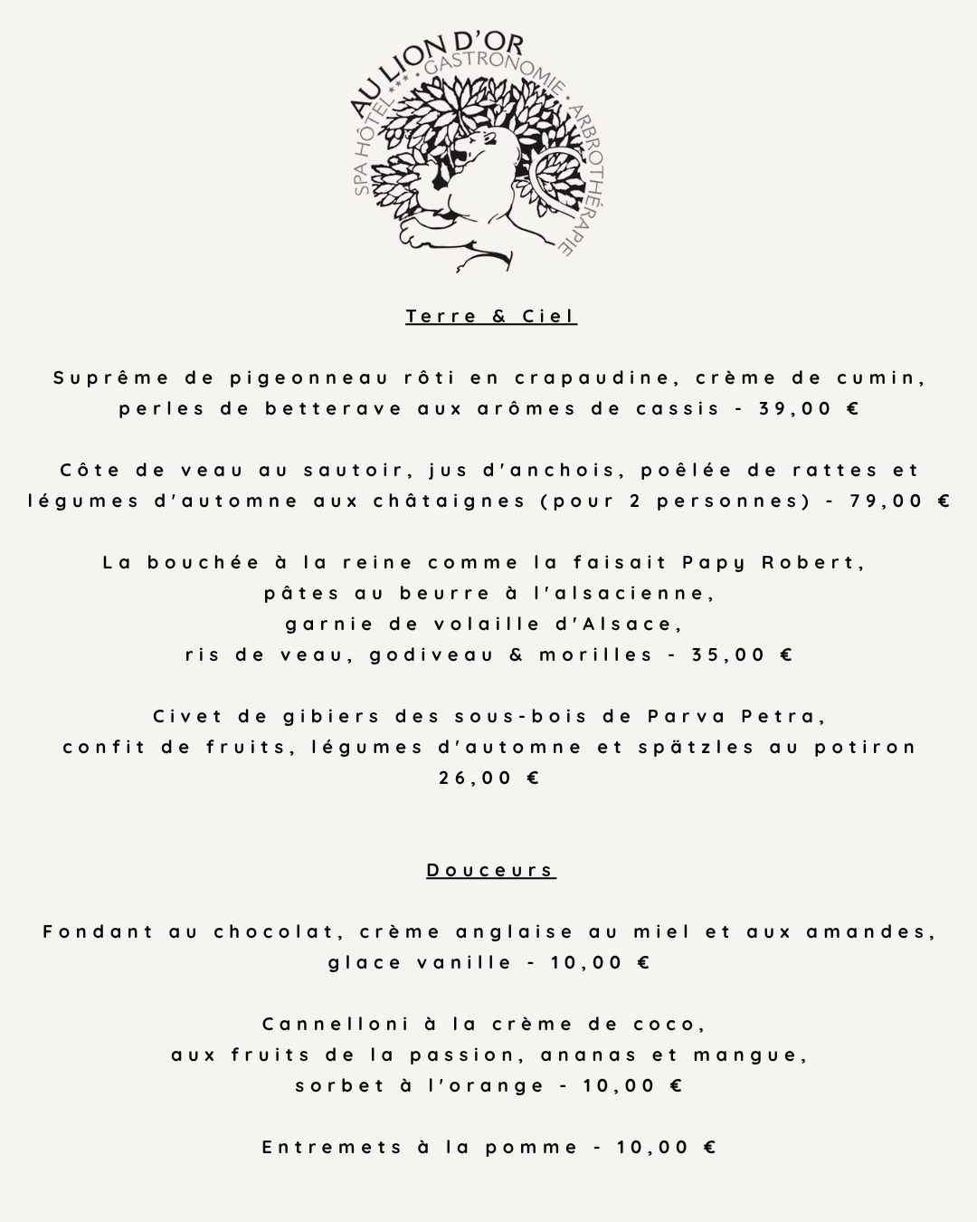 Mets traditionnels ou menu gastronomique, au gré de vos envies .
