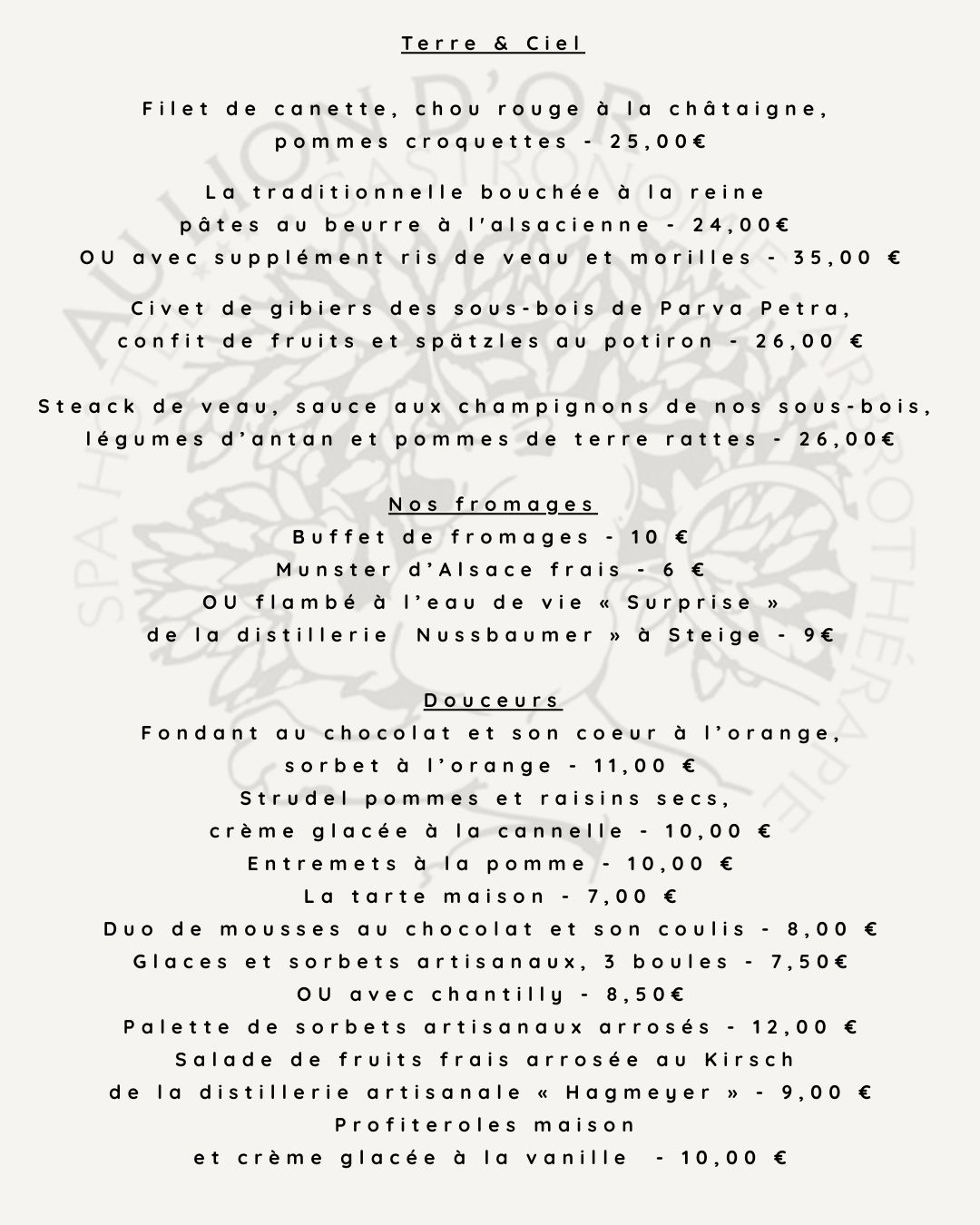 ![]() Sucré servi en continu à la Winstub | ![]() Animaux acceptés (12€/jour) | ![]() Grand Jardin | ![]() Accès PMR |